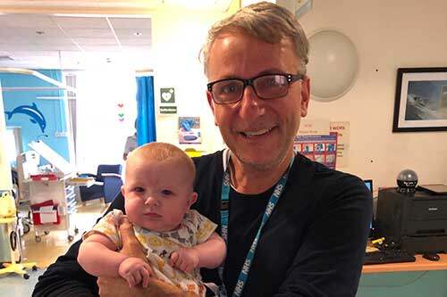 Professor Massimo Caputo holding Finley on the day he left hospital