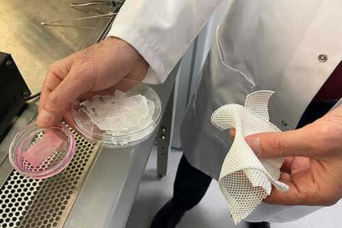 New stem cell plaster [left] original surgical material [right]