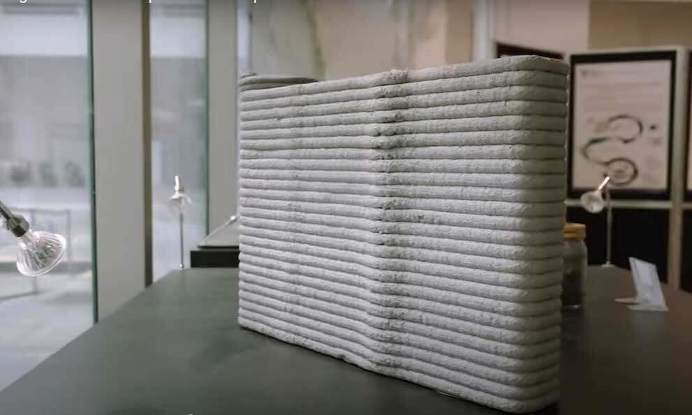 The newly developed 3D concrete printing process involves injecting steam and CO2, captured as the by-products of industrial processes, into the mixing concrete, which then directly incorporates and stores the CO2 in the concrete structure.